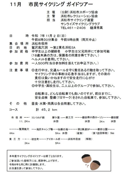 開催日:2025年11月2日(日)(雨天中止) 集合場所:浜松市役所 集合時間:午前8時30分
